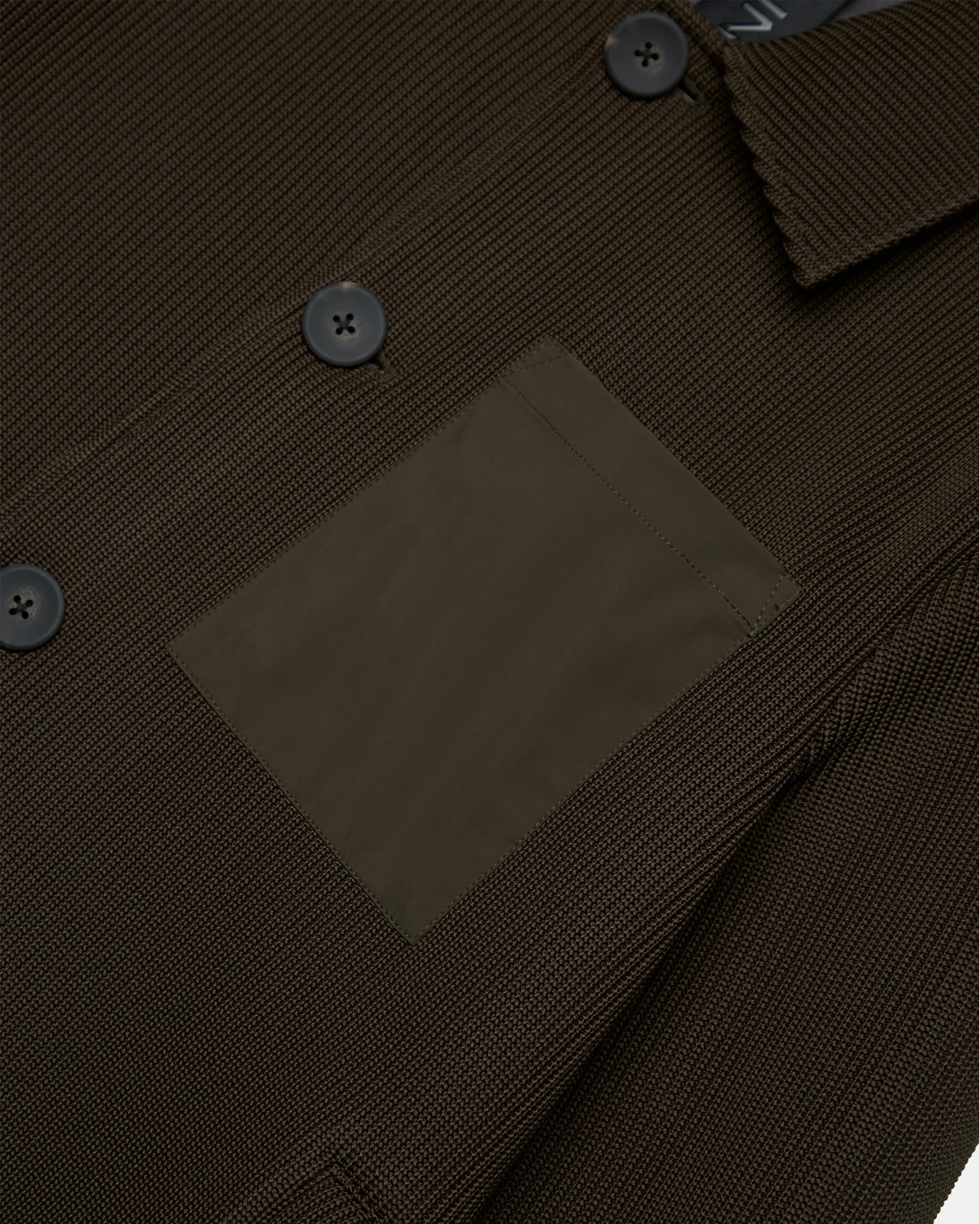 Giacca caban corta con collo a camicia vestibilità regular, giacca sfoderata con interno accoppiato in ciniglia a vista, tasche frontali a filetto, chiusura con bottoni a vista, tasca a toppa sul petto.